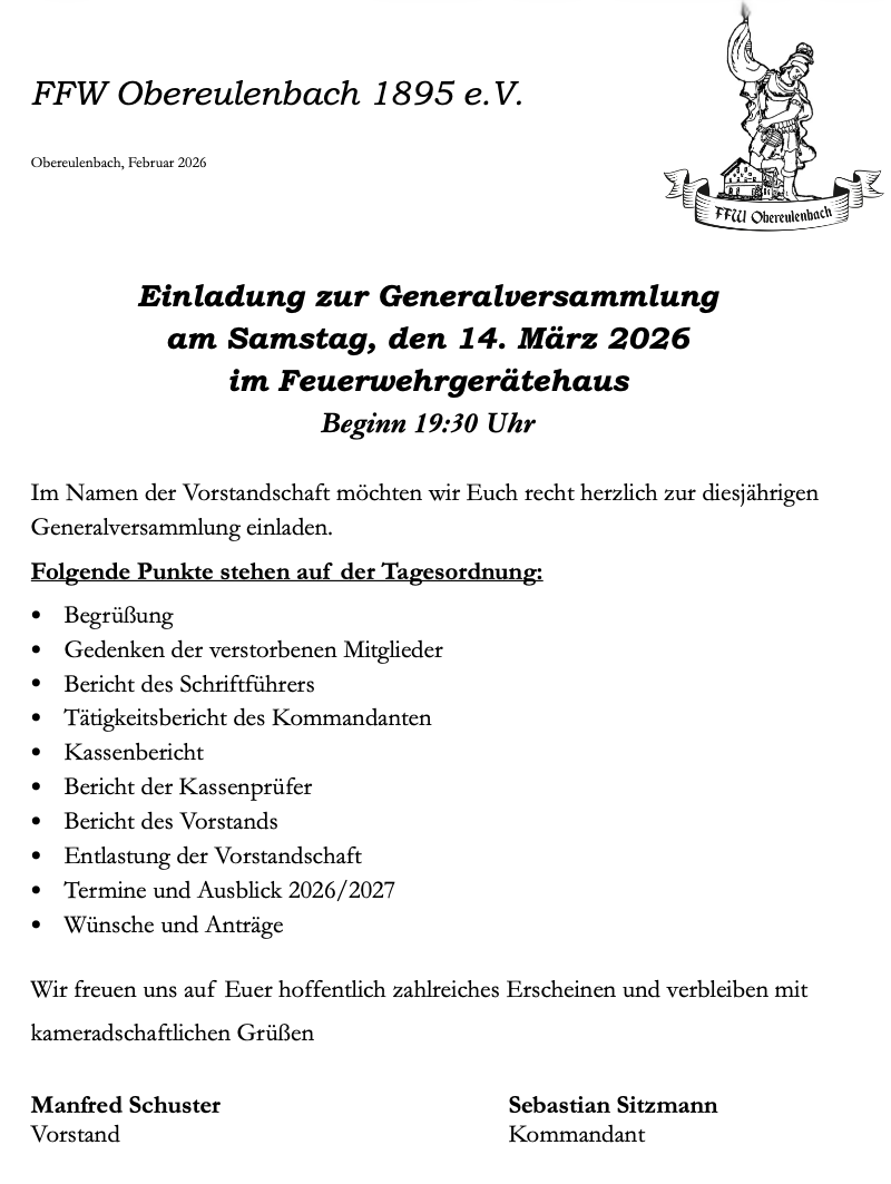 Hans Lankes hat sich erneut bereit erklärt uns alte Fotos und Geschichten aus und über Obereulenbach vorzutragen und wir möchten dies in einem gemütlichen Rahmen mit Euch erleben.