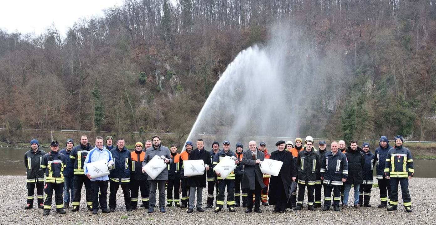 Insgesamt 12 Feuerwehren aus dem Landkreis Kelheim durften sich am Dienstag (05.04.) über sogenannte Schwimmsauger freuen. Zur Übergabe waren neben den Feuerwehren Abt Thomas M. Freihart, Landrat Martin Neumeyer, Bürgermeister Christian Schweiger, Dieter Scholz (Vorstandsvorsitzender Kreissparkasse Kelheim) und Florian Ramsl (Versicherungskammer Bayern) nach Weltenburg gekommen.