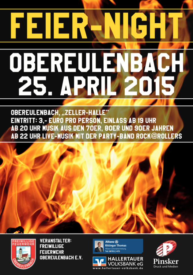 Die Freiwillige Feuerwehr Obereulenbach e.V. veranstaltet 2015 zum ersten Mal die Feier-Night-Party!!