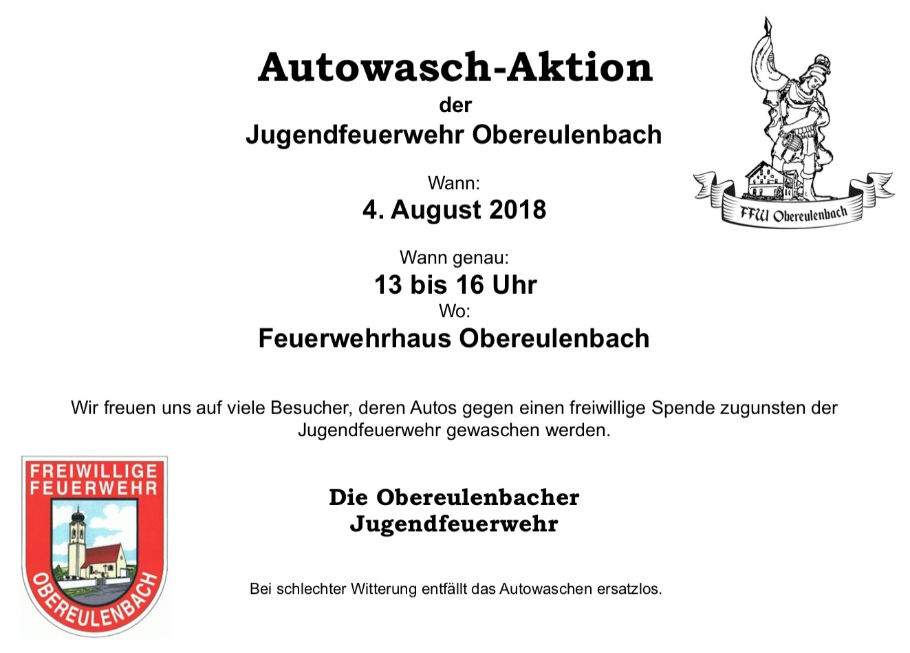 Hinweis: Autowasch-Aktion der Jugendfeuerwehr